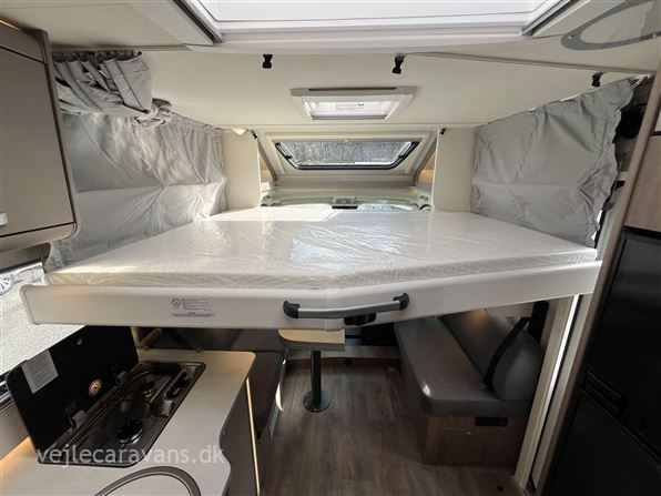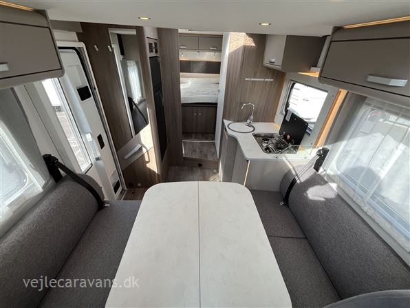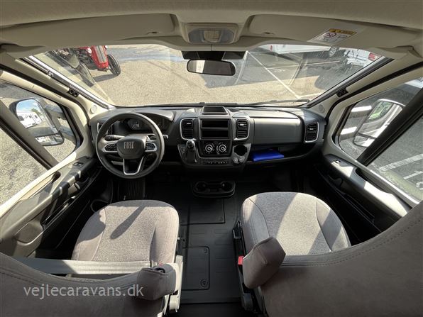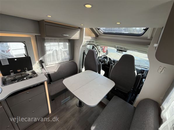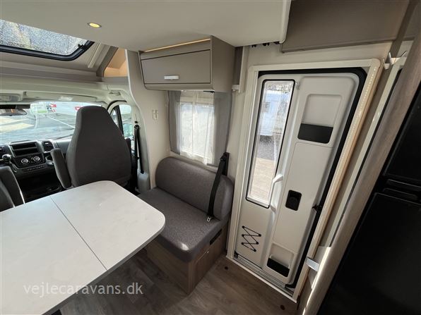 Ny 2026 model. Delintegreret autocamper med face to face siddegruppe. Queens-seng i soveafdelingen. Køkken med 3 gasblus og et køleskab på 167 ltr. med separat fryser. Bilen er en Fiat med 140 HK og 8 trins automatgear. Bilen er bestilt med følgende udstyr: Pro+ pakke, automatgear, safety pakke med adaptiv fartpilot, Elek. parkeringsbremse, dæktrykssensor, optik pakke2, Truma Combi 6(gas/el varme), trærist til brusebund, hæve/sænkeseng over siddegruppe. Prisen er inkl. leveringsomkostninger og nr. plader. FORVENTES I BUTIKKEN I UGE 21 - 2026.