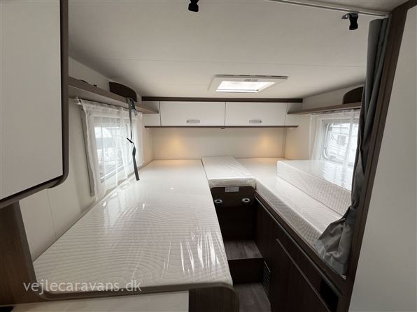 NY 2025 MODEL. En af de mest populær camper med enkeltsenge i bagenden, toiletrum med brusekabine, køkken samt sideområde i midten af vognen. Denne vogn er fra fabrik ekstra udstyret med 8 trins automatgear, Traction+, 16" Alu fælge, Sengeudvidelse, Trærist i brusebund, Forberedelse for solceller og bakkamera, samt Truma Combi 6E. PRISEN ER INKL. leveringsomk. og nr.plader.