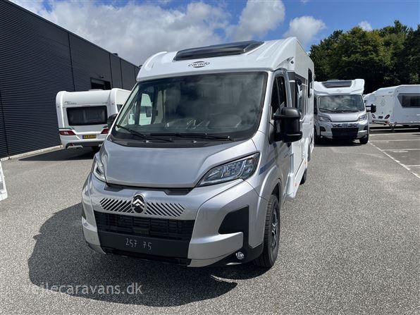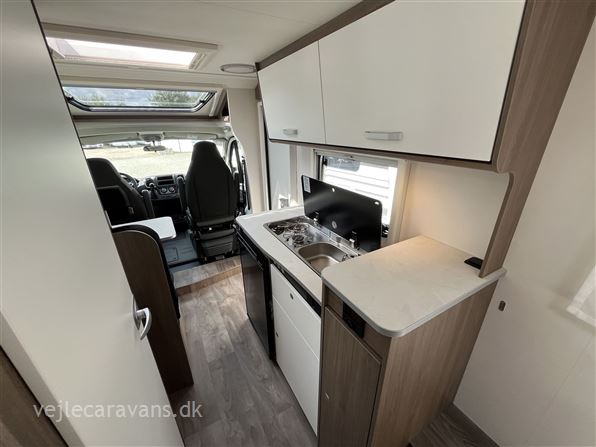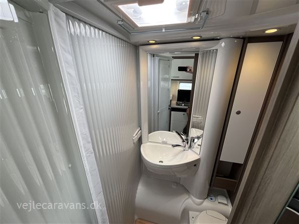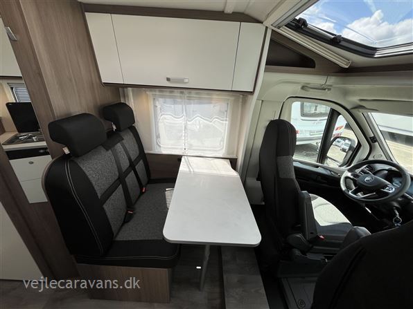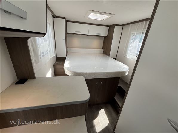 NY 2026 MODEL. En af de mest populære campere med Queensbed i bagenden, toiletrum med brusekabine, køkken samt sideområde i midten af vognen. Denne vogn er fra fabrik ekstra udstyret med 8 trins automatgear og 140 hk. Fiat motor, Traction+, 16" Alu fælge, Trærist i brusebund, elektronisk parkeringsbremse, Safetypakke med Adaptiv fartpilot, Elektrisk gulvvarme, dæktrykssensor, Forberedelse for solceller og bakkamera, samt Truma Combi 6E varme m/elpatron. Prisen er inkl.leveringsomk. og nr.plader. FORVENTES I BUTIKKEN I UGE 01 - 2026.