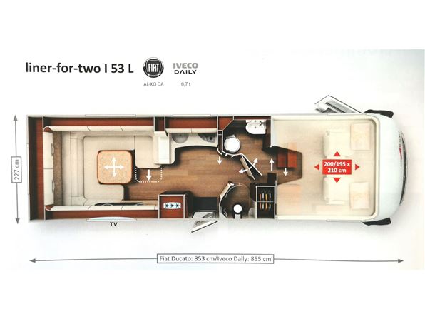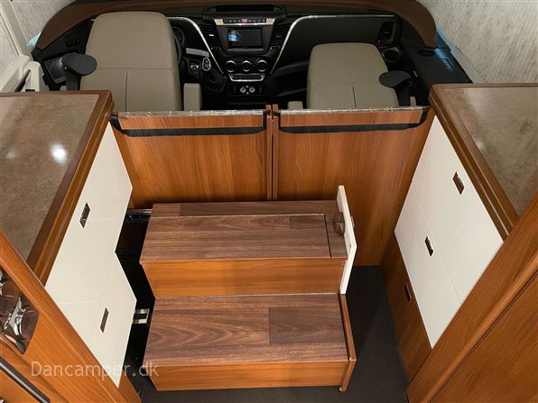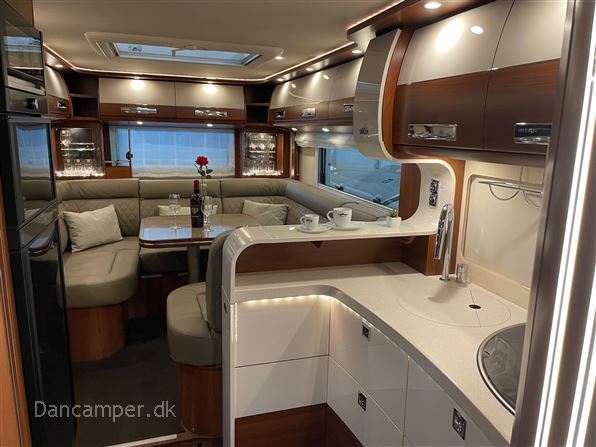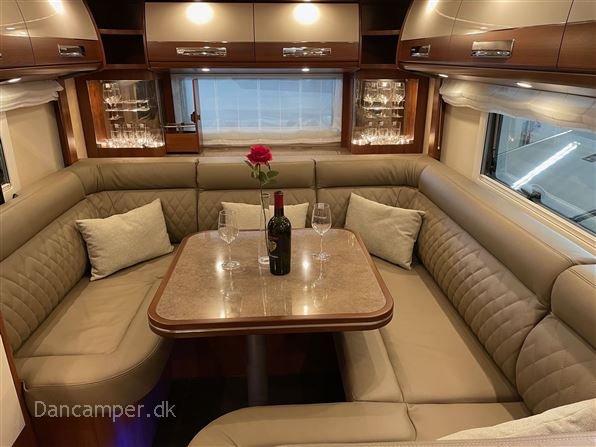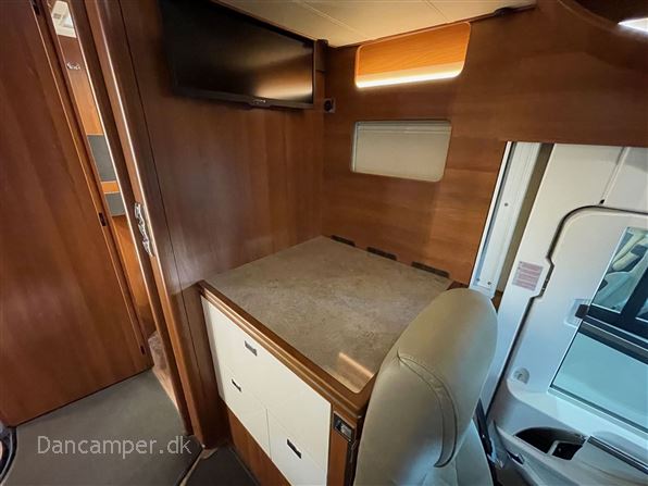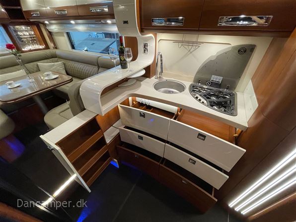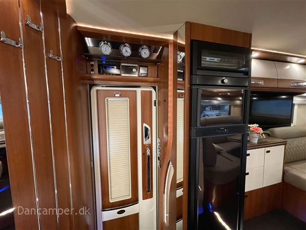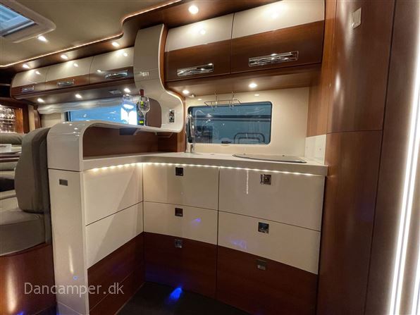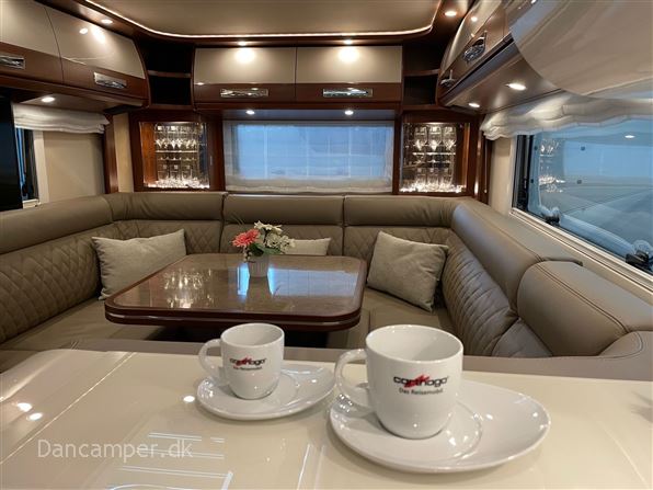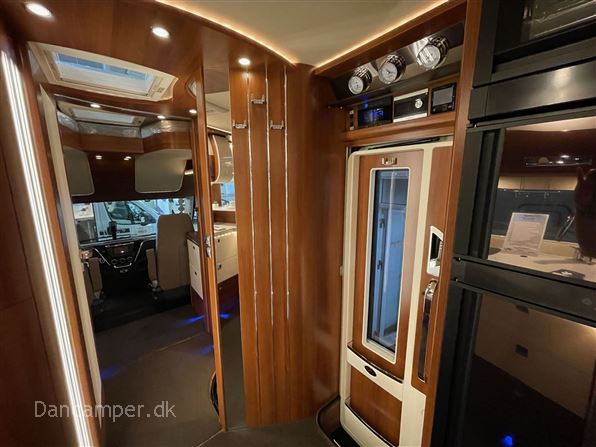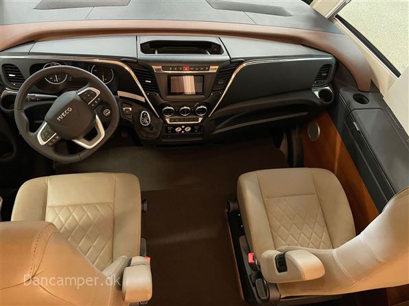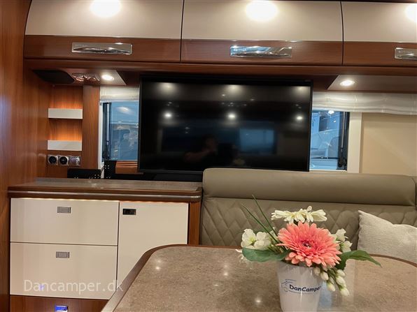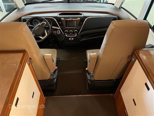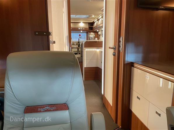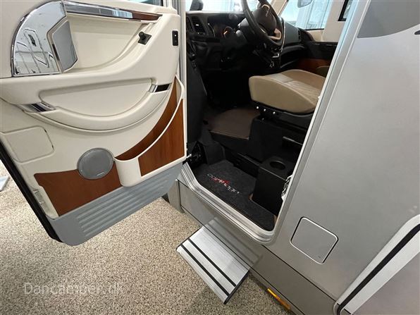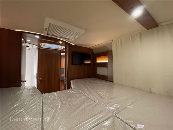 Fabriksny.Carthago liner-for-two I 53L (Long version). Flot, stor og rummelig. Exclusiv luksus for to. Bygget op på Iveco.Ekstra stor rumfølelse i rund salonggruppe med ekstra opbevaringsplads og barskab i glas. Elektrisk nedsænkbar langsgående enkeltsenge. Komfort baderum. Klædeskab i fuld højde. Ekstra stor scootergarage, kan lastes med 450 kg og har en højde på 115/145 cm afhængig af hvor i rummet man laster. Klima i førerhus, ESP med traction control og Bjergkørselshjælp, adoptiv fartpilot, Førerassistent pakke, Køkken /kaffe pakke, Oyster 85 parabol, 40" LED TV pakke med udtræk, 24" LED TV i soveværelset, EL trin ved førerdør, Sølv lakering, læderrat med multifuktioner, læderindtræk Macchiato, gulvtæpper, elektrisk håndbremse, bus elspejle med varme, 207 hk Iveco motor med 8 trins aut.gear, Differentialespærre på bagaksel, Alubund i garage, Udv. gasudtag, Tech tower køleskab med ovn, Alde varmeanlæg, Truma duoControl CS, bakkamera med dobbelt linse