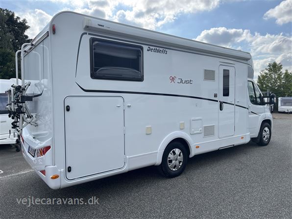 Flot og velholdt Brugt Dethleffs delintegreret model med 165 hk motor. Den har kørt 37500 km. Vejeseddel: 2940. Den er udstyret med enkeltsenge, separat bad og toilet, vinkelkøkken og dejlig siddegruppe. Modellen er med følgende ekstraudstyr: Sengeudvidelse i soveafd., sengeombyg til sidegruppe, Truma monocontrol til gas, Clesana kemifri toilet, 2000w inverter, solceller, 2 stk. lithiumbatterier, radio og bakkamera, cykelholder, wifiantenne med router, gasalarm, tv i soveafd., gasovn. Sidepaneler til markise og gulvtætte kan købes for 2000 kr. Prisen er inkl. leveringsomk. og nr. plader. Vognen sælges i kommission for kunde, sælges kun i ren handel.