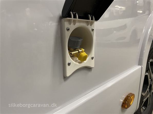 Bodelen er moderne, elegante og veldesignede. Detaljerne er i høj klasse, såsom LED-profil lamperne og grebenes kromfinish. En hyggelig atmosfære byder dig velkommen med valget af varme toner og blanke finish på møbler, overskabe og bord. Funktionelt i sine boligløsninger - overrasker med boligkomfort og mange gode løsninger til at rationalisere hele bodelen.