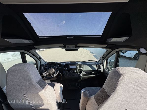 Udstyr: 8-trins automatgear, Elektrisk parkeringsbremse, Brændstoftank 90 liter, Care-Drive FIAT Pakke, Elektrisk lukkehjælp, Tagluge 40x40cm, Tagluge 70x50cm, Tagluge på WC, tæppe i sidde- og opholdsområde, indsats til brusebund, Udendørs bruser, Forberedelse til solcellepanel, LiFePO4 lithium batteri. Alt ekstraudstyr er medregnet i udsalgsprisen. Hyndestof: COOL GREY - Lakering: Artense grå