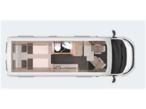 Helt ny Campervan fra Knaus - BoxTime 630 ME - enkeltsenge, WC med bad, god siddeplads, køkken med fin plads.