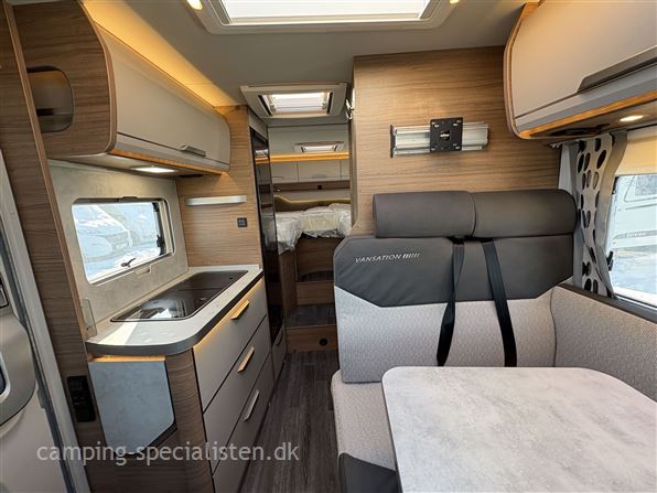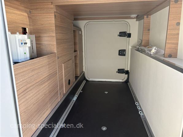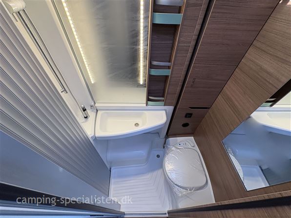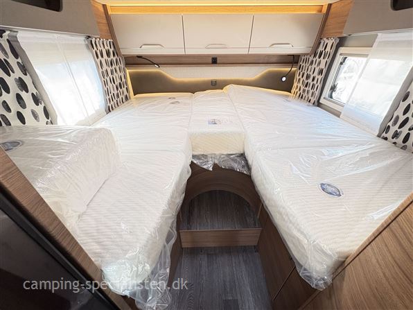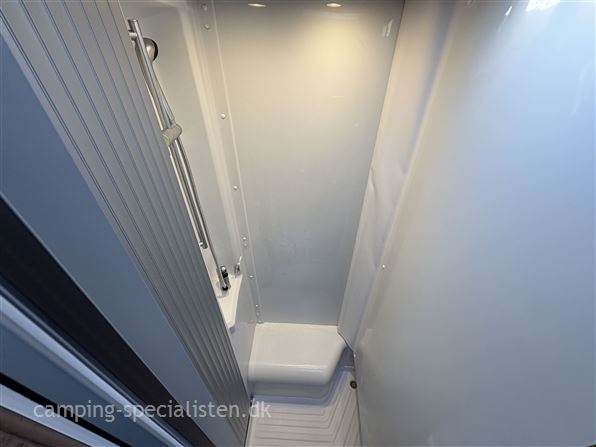 Indretning: enkeltsenge, toiletrum med svingvask/bruseniche, køkken med store skuffer og slimline kompressorkøleskab, siddegruppe til 4 personer inkl. førersæderne.