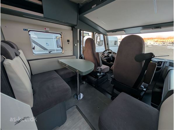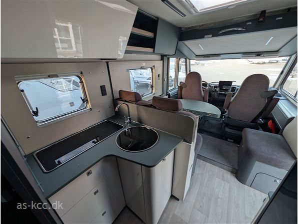 Med Laika Kosmo H 1409 får du en fuldintegreret autocamper, der kombinerer luksus, funktionalitet og rejsefrihed. Den store panoramaforrude og det elegante interiør skaber en lys og indbydende atmosfære, mens de komfortable sengepladser, fleksible siddegruppe og gennemtænkte opbevaringsløsninger gør hverdagen på tur nem og bekvem.