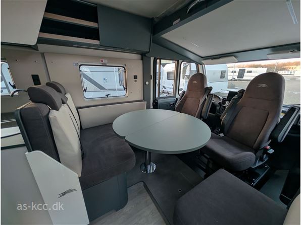 Det robuste Fiat Ducato-chassis, den vinteregnede isolering og den kraftfulde varmefordeling sikrer, at du kan rejse året rundt – altid med tryghed og komfort. Den store garage med lav indstigning, belysning og varme giver plads til både cykler og campingudstyr.