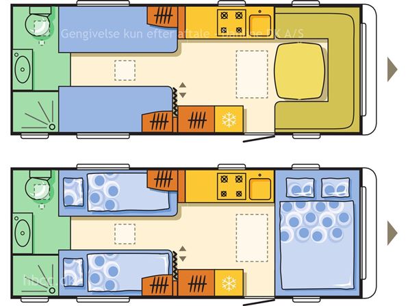 Indretningen gør vognen ideel til par, der ønsker både komfort og god plads på ferien.