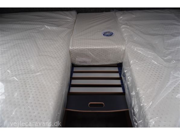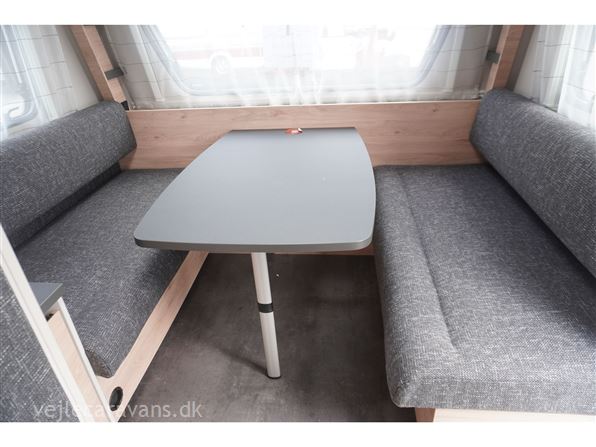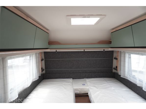 Ny Dethleffs med 2 enkeltsenge med mulighed for at lave en dobbeltsenge i bagende af campingvognen. Endesiddegruppe forreste i vognen med mulighed for at lave en opredning. Køkken midt i vognen med 2 gasblus, skuffer, skabe, og en udtrækshylde, samt et køleskab på 142 ltr.. Toilet i venstre side af vognen væk fra fortelt siden. Vognen er bestilt med følgende ekstra udstyr: Kombi 4E varme, sengeudvidelse, løftbar hovedgære i sengene, bred dør med vindue, kombistik. Prisen er inkl. leveringsomkostninger og nr. plade.