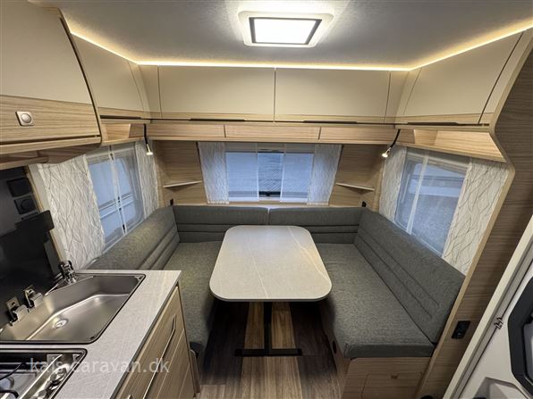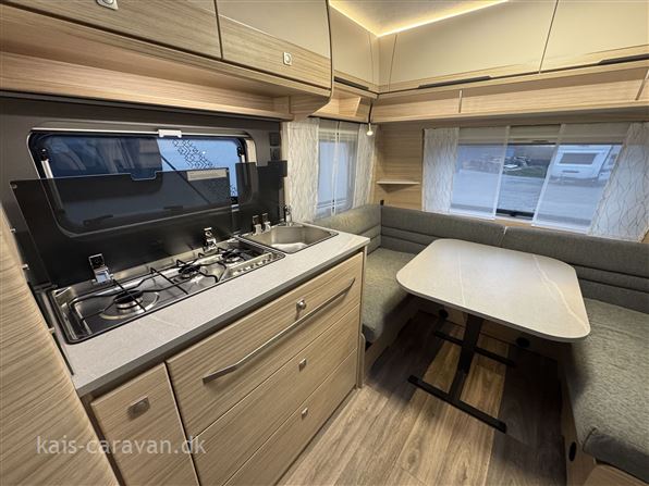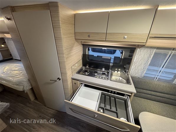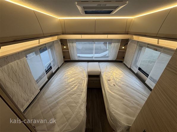 Super lækker enkeltsengs vogn med lameludtræk så man kan lave en stor dobbeltseng i bagenden af vognen. Midt i vognen er der køkken med skuffer og 142l køleskab med fryser samt toiletrum. forrest i vognen er der en siddegruppe. Vognen er udstyret, gulvtemperering, Ekstra serviceklap , Lyspakke, Myggedør, 1800 kg aksel Totalvægt kan gratis ændres optil 1800 KG. prisen er incl. leveringsomkostninger.