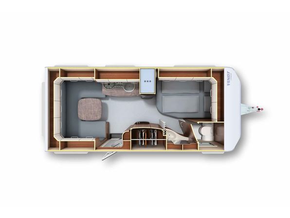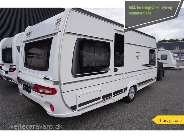 Velholdt kvalitets campingvogn med fransk seng i venstre side for. Toilet i højre side for med håndvask uden for toiletrum. Rundsiddegruppe bagerste i vognen. Køkken i venstre side af vognen væk fra fortelt siden med 3 gasblus, brede skuffer, 2 udtræksskabe, samt et køleskab på 150 ltr. Der er monteret Truma XT mover, cykelholder foran, tv antenne. Der medfølger ikke nogen fortelt så hør os om mulighederne. Totaltvægten kan vejes op til 2000 kg. så der en stor lasteven. Prisen er inkl. leveringsomkostninger og nr. plade. Der er 1 års garanti på vognen.