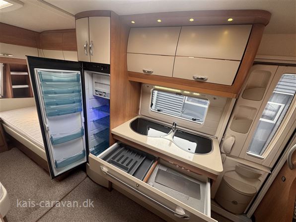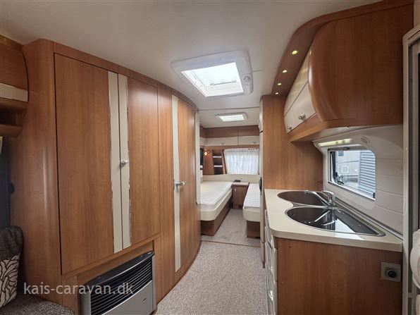 Enkeltsenge i fronten af vognen, køkken med skuffer varmtvand og 142 l køleskab midt i vognen samt toilet. rundsiddegruppe bagerst i vognen. Vognen er udstyret med mover, batteri, kantsyet gulvtæpper, gulvvarme, Ultraheat, stabilisator samt Isabella Commodore 3 m fortelt med fiber stell, solsejl. Prisen er incl Leveringsomkostninger.