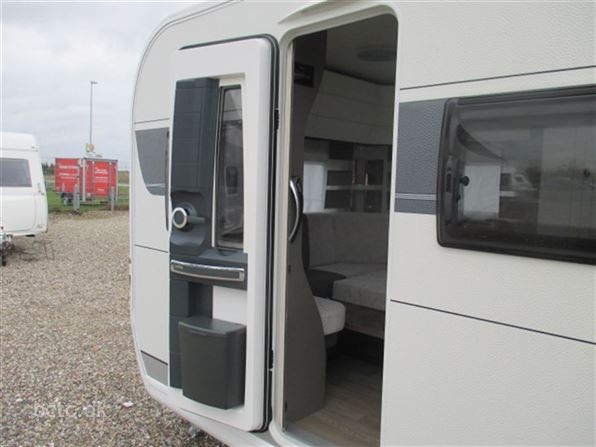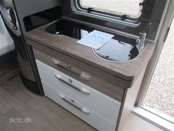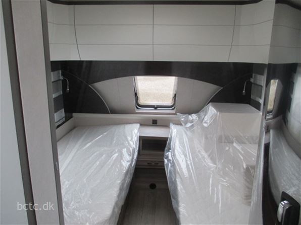 Denne Edition 495 UL har vi fået special-lavet og udstyret med: Gulvvarme, udvendig gasudtag, batteri-pakke (Autark), søjlebord samt forstærket aksel til 1800 kg totalvægt. Derudover lameludtræk mellem de to enkeltsenge til opredning til én stor dobbeltseng.