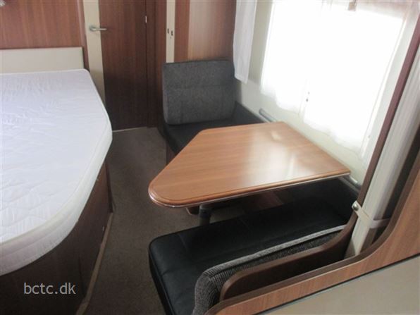 Lækker indretning med kæmpe rundsiddegruppe, ekstra stort køkken, stor dobbeltseng, sidesiddegruppe samt kæmpe toilet- og bruserum i bagenden. Vognen står ekstram pæn og velholdt - stort set som var den ny.