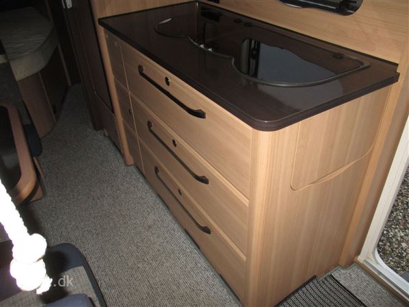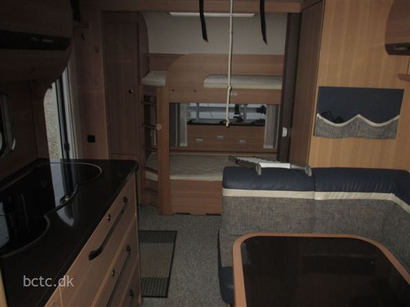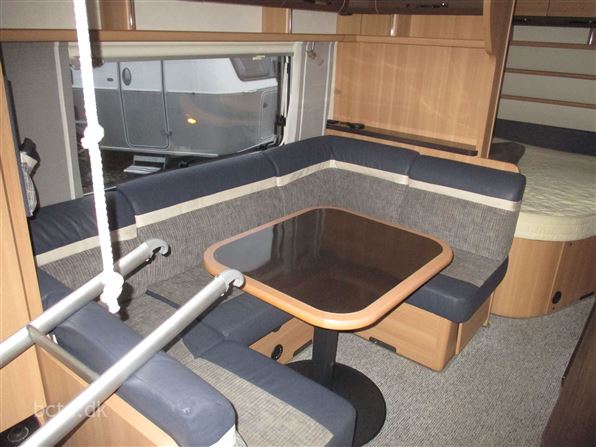 Derudover store køjesenge, ekstra bred dobbeltseng, kæmpe rundsiddegruppe, stort køleskab, gulvvarme, favonsyet tæppe, ATC elektronisk anti-slingre-system, fuldelektrisk Truma XT-mover, batterianlæg, magasin-monteret aircon, cykelstativ for og bag samt tagmonteret markise (Thule 6300) og Isabella Commodore 3 m dyb fortelt CarbonX.