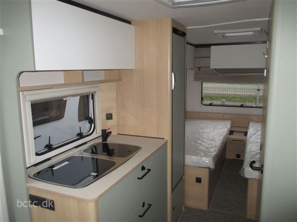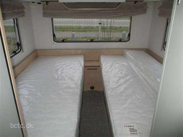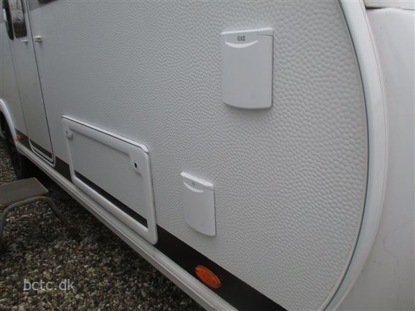 Denne vogn har vi fået special-bygget med: Style-pakke, autark-pakke (12V), multistik, gasudtag, DuoControl m/ crash-censor, gulvvarme, ekstra serviceklap, ATC elektronisk anti-slingre-system, ekstra vindue i bagende, det flotte Fenit-polster , alu-fælge samt forstærket aksel og undervogn, så vognen kan opvejes helt op til 1800 kg totalvægt - altså en lastevne på op til 550 kg!