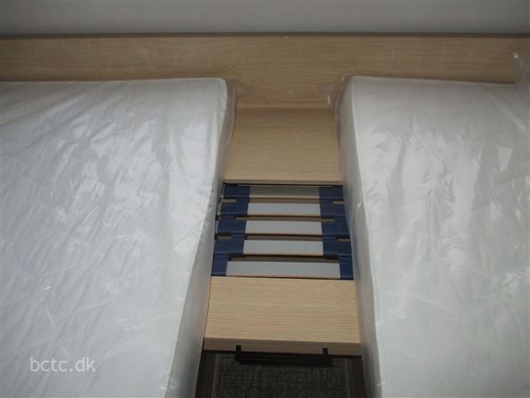 Store enkeltsenge med lameludtræk til én stor dobbeltseng, dejlig rundsiddegruppe. Alt udført i topkvalitet.
