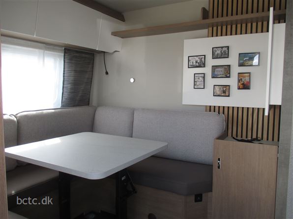 Så er den her endelig. Den flotte nye Senara 550 E, som vi har fået bygget med den ekstra brede Premium-dør, 2000 kg aksel (vognen kan opvejes helt op til 2000 kg totalvægt), alu-fælge, lameludtræk mellem enkeltsenge, special-polster Silky Leaf, glatte sideplader samt Scandic Superior-pakke.