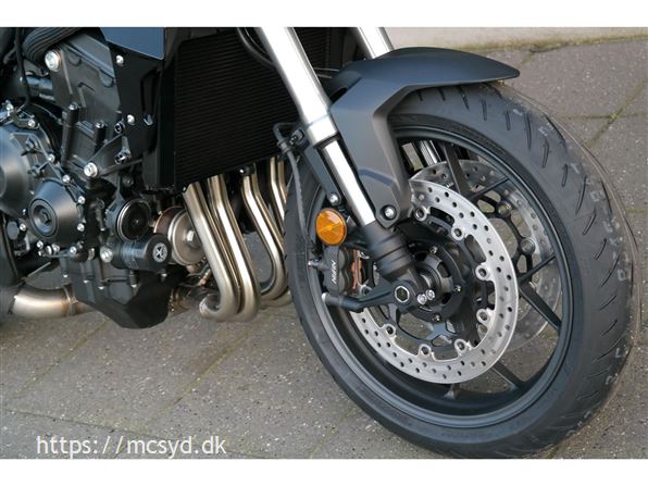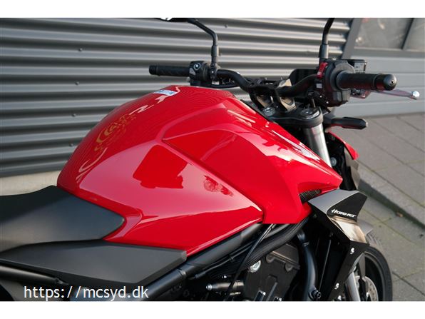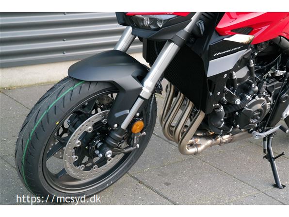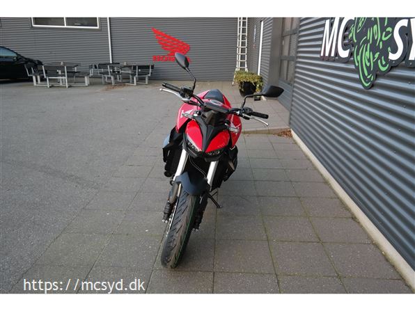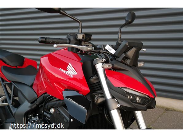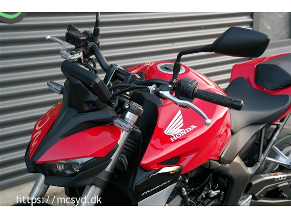 CB1000 Hornet skiller sig ud med sin kompakte og aggressive styling, der understreges af de dobbelte LED-forlygter og den karakteristiske brændstoftank. Det minimalistiske design er inspireret af streetfighter-looket og afspejler Hondas filosofi om funktionelt og råt design uden overflødige dekorationer.