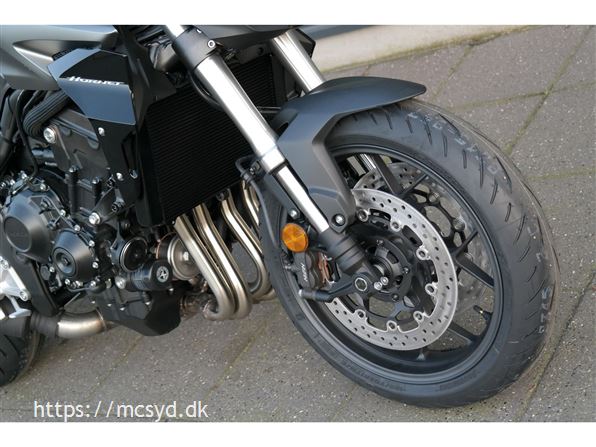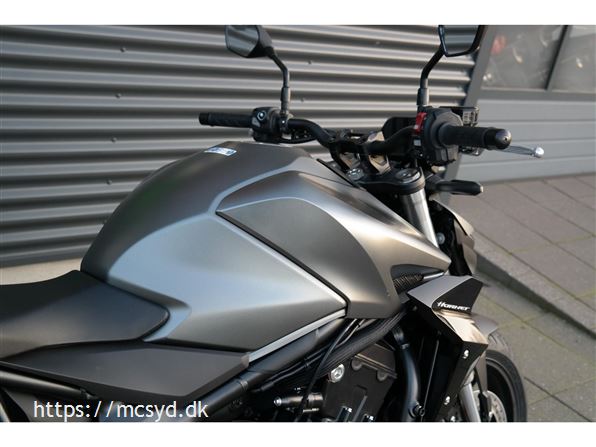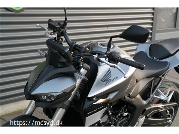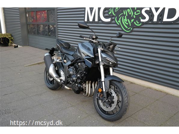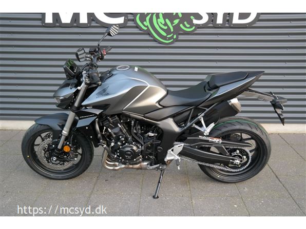 CB1000 Hornet skiller sig ud med sin kompakte og aggressive styling, der understreges af de dobbelte LED-forlygter og den karakteristiske brændstoftank. Det minimalistiske design er inspireret af streetfighter-looket og afspejler Hondas filosofi om funktionelt og råt design uden overflødige dekorationer.