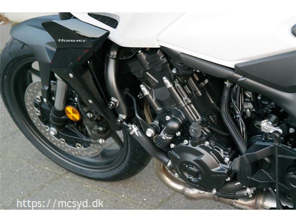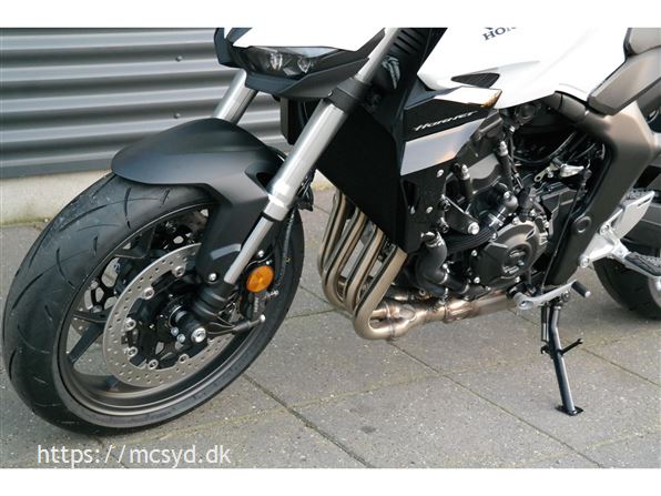 CB1000 Hornet skiller sig ud med sin kompakte og aggressive styling, der understreges af de dobbelte LED-forlygter og den karakteristiske brændstoftank. Det minimalistiske design er inspireret af streetfighter-looket og afspejler Hondas filosofi om funktionelt og råt design uden overflødige dekorationer.