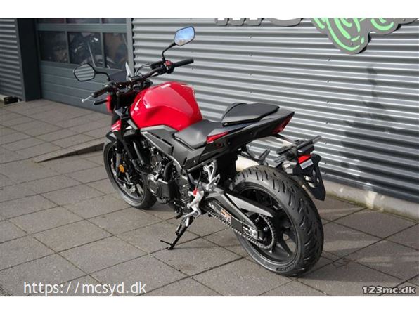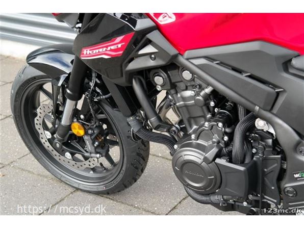 CB500 Hornet. Sælges. Denne maskine er designet til at skille sig ud i bybilledet med sit aggressive look og aerodynamiske forbedringer. Den er bygget til at opfylde A2-kørekortets krav uden at gå på kompromis med kraften – takket være en 471cc motor, der yder 35 kW og 43 Nm. Et opdateret ECU giver en forbedret acceleration og Honda Selectable Torque Control er nu standard.