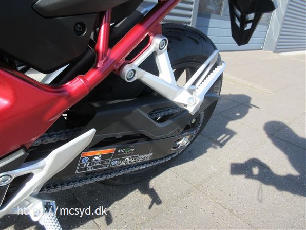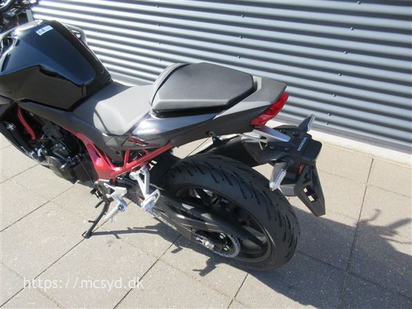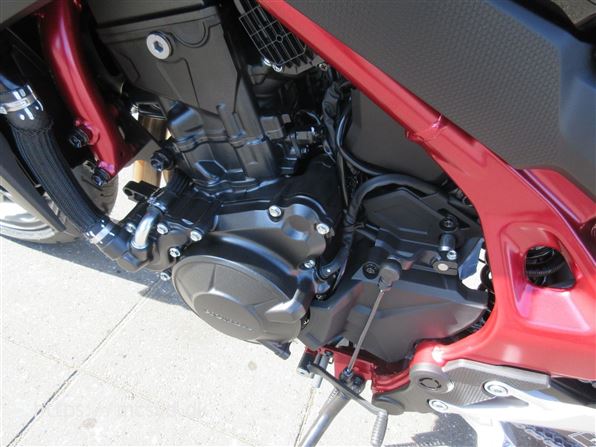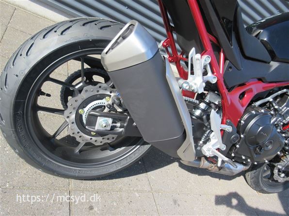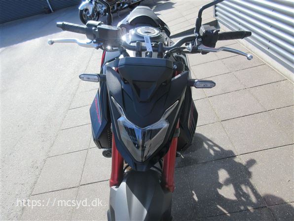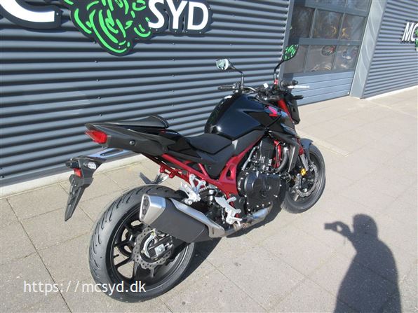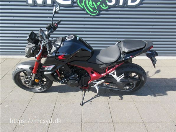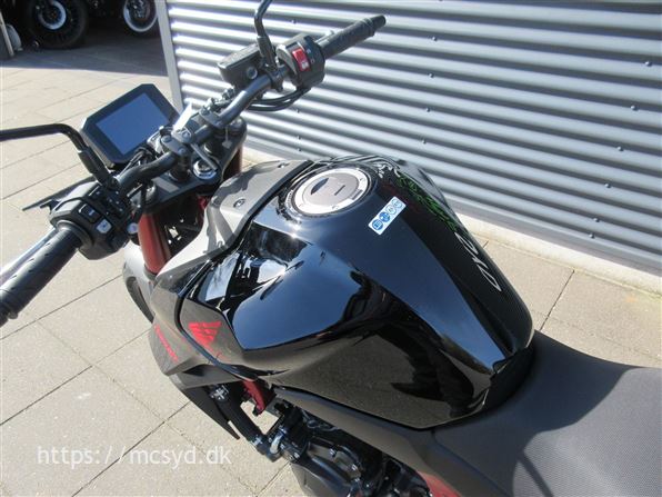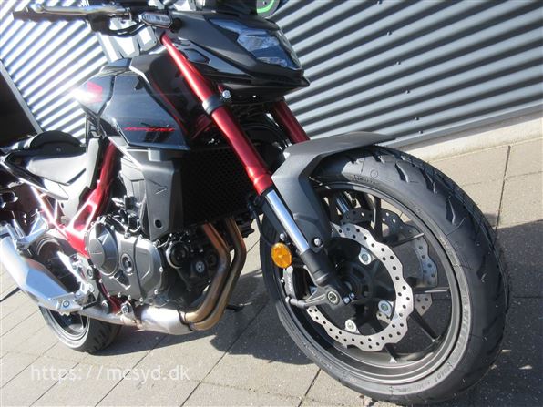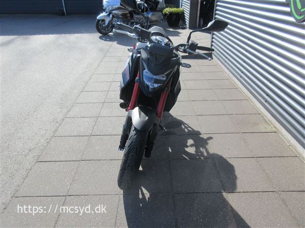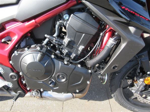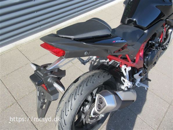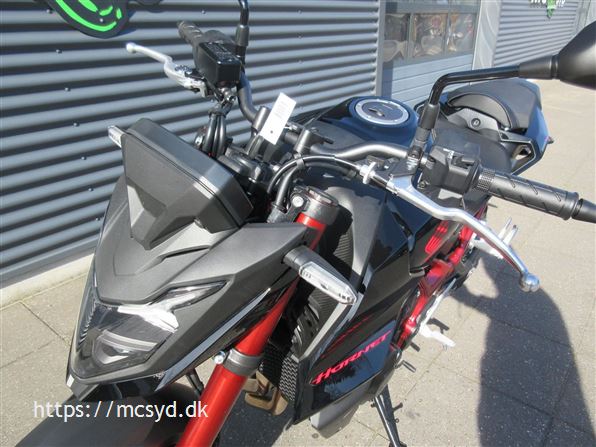 Du kan begynde med den spritny 755 kubik, 8 valve twin-cylinder motor som leverer imponerende kræfter. Læg et ultralet stel finpudset til sportslige køreegenskaber oveni. Det hele pakket ind i en ren streetfighter stil, som får folk til at dreje hovedet, når de møder dig på landevejen. Et team af unge designere på HONDAs designcenter i Italien har fået den ny CB750 Hornet på vingerne, hvor intet andet kommer i nærheden. Ønsker du kræfter for sjov på gaden? Så giv dig i lag med 92hk og et moment på 77Nm, en assist/slipper kobling giver dig et gnidningssfrit gearskift, når du gearer op og giver dig kontrol over baghjulet, når du skifter hurtigt ned i gear. Det hele drejer sig også om, at motoren kan høres og føles. En 270 graders krumtap giver også motorlyden karakter i de lave omdrejninger. Vi har justeret udstødningen, så du kan nyde den pulserende motorlyd fra bunden, gennem mellemområdet til det hæsblæsende brøl ved høje omdrejninger. Den nye Hornet giver dig selvfølgelig som standard en perlerække af det udstyr, som HONDAs ingeniører har frembragt til glæde for kørekomforten og køreegenskaberne. Standardudstyret tæller blandt andet Throttle By Wire (TBW), 3 standard køre-modes: SPORT, STANDARD og RAIN, samt en individuel USER mode, Honda Selectable Torque Control (HSTC), Honda Smartphone Voice Control samt en 5-inch TFT farvedisplay . Alt det sjove er ikke kun forbeholdt A-kørekortholdere. Motoren kan ændres til 48HK, så du kan køre Hornet med et A2-kørekort, og når A-kørerkortet kommer i lommen, er det lige så simpelt at ændre den tilbage til fuld power igen., ABS bremser, TCS (traction control), kørecomputer, gearindikator, infocenter, startspærre, indsprøjtning, LED baglygte, LED forlygte, A2 kørekort muligt