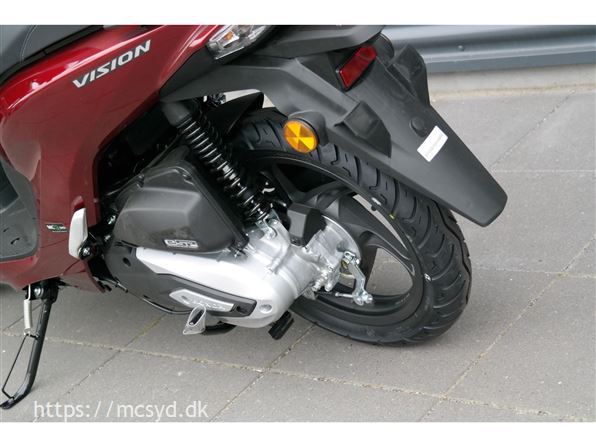 Honda Vision 110 er udstyret med kombineret bremsesystem (CBS), der fordeler bremsekraften jævnt mellem for- og baghjul for at give bedre stabilitet og sikkerhed, selv ved hårde opbremsninger. Forhjulet har en 220 mm skivebremse, mens baghjulet anvender en 130 mm tromlebremse, hvilket giver præcis kontrol og effektiv bremseevne.