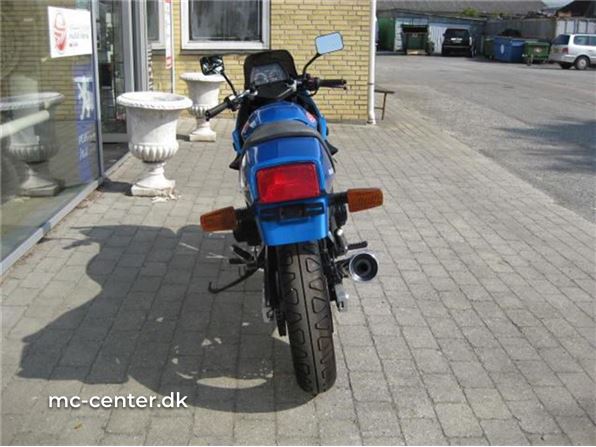 SUZUKI GSX 750 ESD Ccm.: 750 Farve.: blå Årg.: 1983 Km.: 50.000 Kan finansernes uden udbetaling 557,- Kr. Pr. md. uden udbetaling. Dette er et virkeligt flot eksemplar, monteret med Marshall 4 i en udstødning, clip on styr som er justerbart, skal ses. i 1983 sprængte Suzuki rammen med denne model i Superbike- klassen. 16- ventilet motor med 83 hk, Top fart 200 KM/t